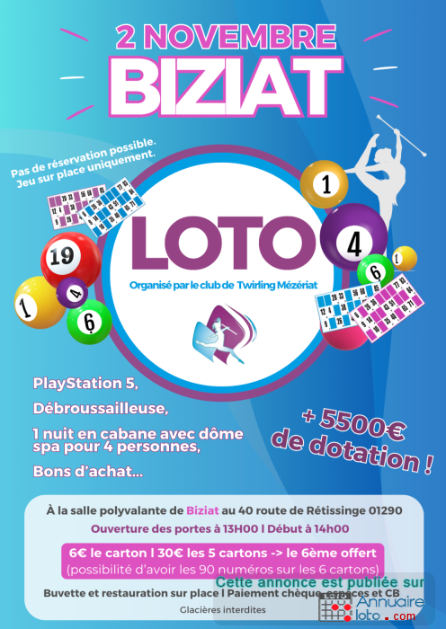 🎉 LOTO DU TWIRLING – SALLE DE BIZIAT 🚨