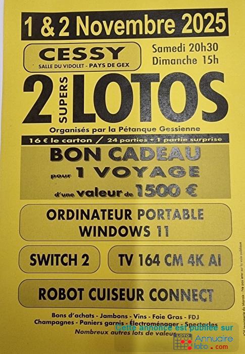 Localisation du loto : Salle du Vidolet 01170 Cessy