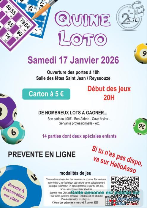Loto nocturne, avec 14 parties dont 2 parties enfants (ouvertes à tous)