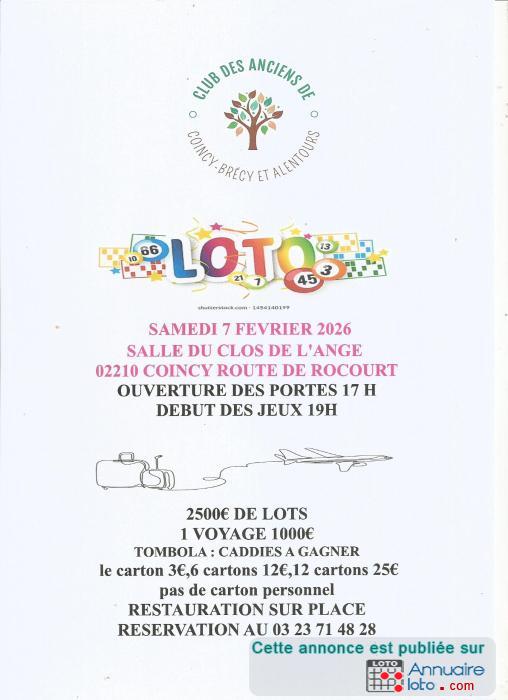 Loto conviviale à Coincy, buvette sur place avec croque-monsieur et crêpes