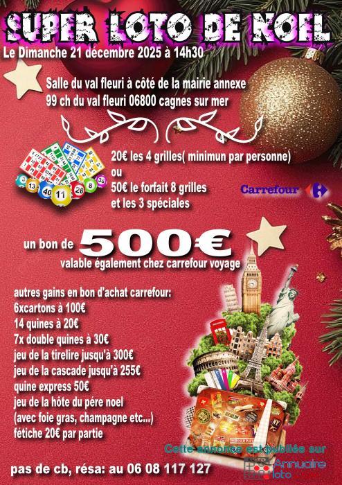 Super Loto de Noel salle du val fleuri avec un bon d'achat de 500€ valable également chez carrefour voyage !
