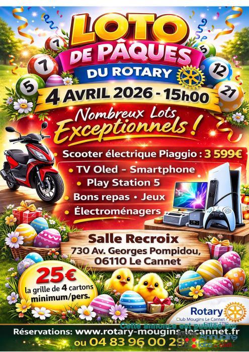 Le Rotary Club Mougins – Le Cannet organise son Grand Loto de Pâques et vous attend nombreux pour tenter votre chance ! 🍀