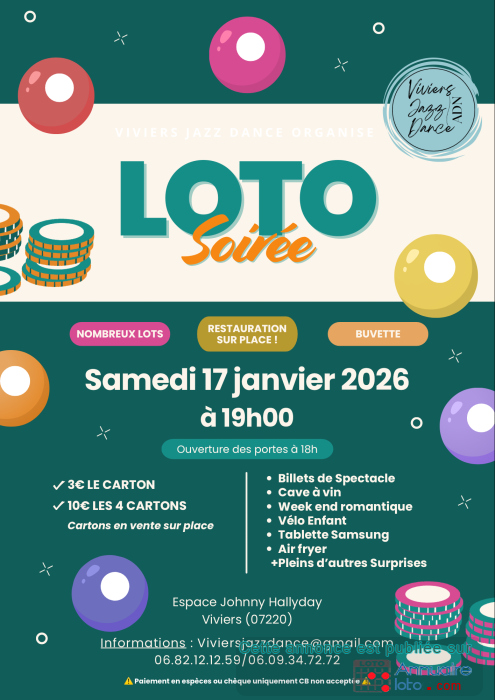 ✨L’association Viviers Jazz Dance organise son tout premier LOTO !