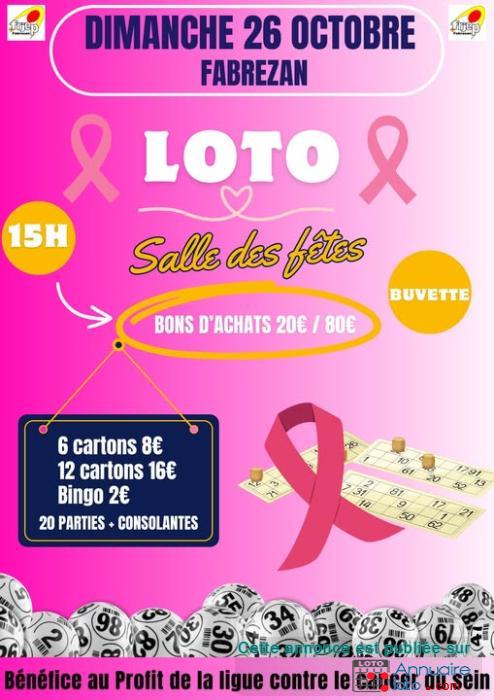 Loto au profit de la ligue contre le cancer du sein (octobre rose)