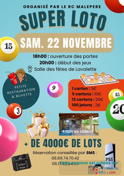 Localisation du loto : salle des fetes de lavalette stade de lavalette 11290 Lavalette