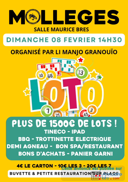 Localisation du loto : Salle Maurice BRES 268 Av. du Comtat 13940 Mollégès