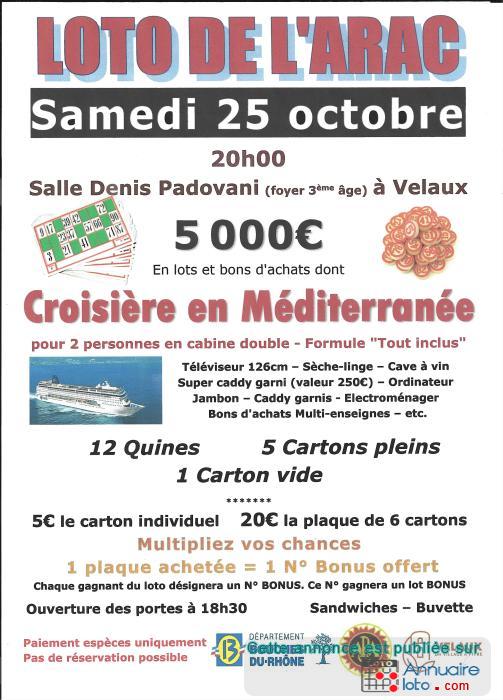 L'ARAC VELAUX vous propose son GRAND LOTO D’AUTOMNE