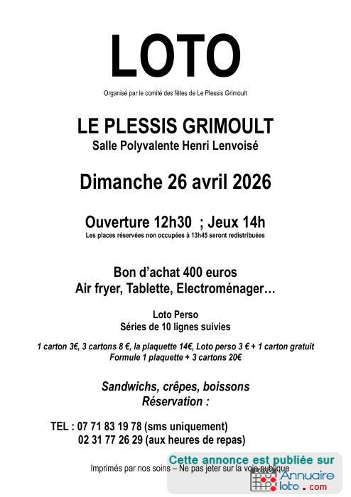 loto organisé par le comité des fêtes de le plessis grimoult