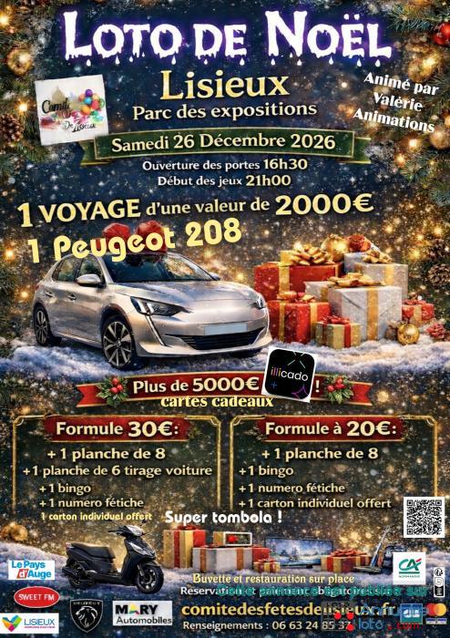 Loto de noël parc des expositions de Lisieux samedi 26 décembre.