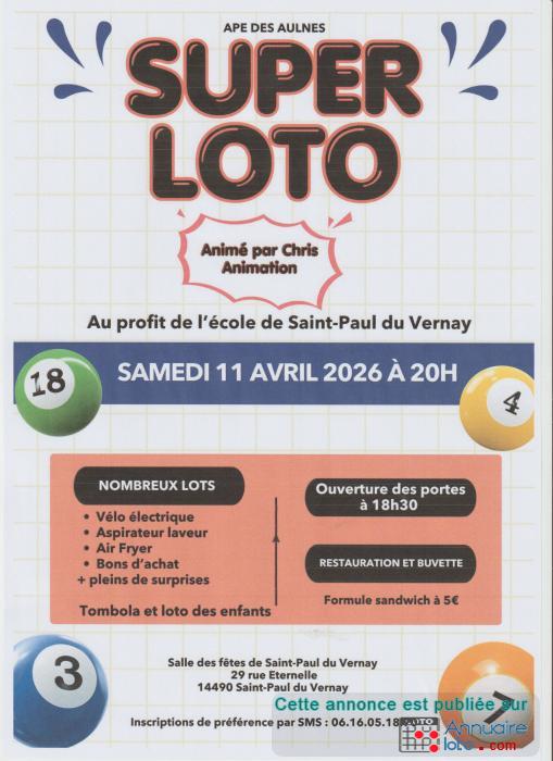 Localisation du loto : SALLE DES FETES 29 RUE ETERNELLE 14490 Saint-Paul-du-Vernay