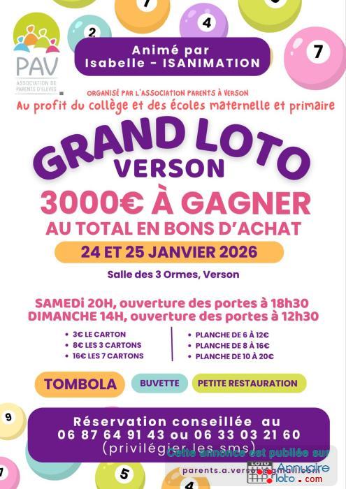 Dans la bonne humeur, l'association des parents d'élèves de Verson (maternelle, élémentaire et collège) vous propose une soirée loto.