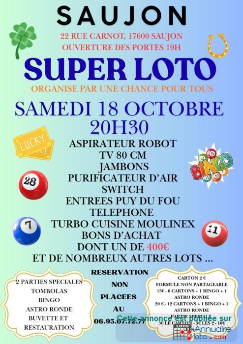 LOTO 14h30 Salle Carnot Saujon, Ouverture des portes 13h30