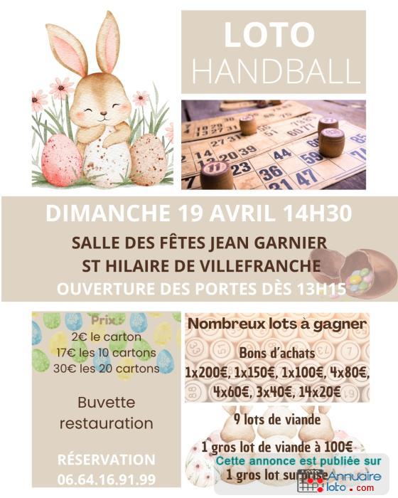 Le SHSJ Handball organise un loto dimanche 25 Mai 2025 à la salle des fêtes Salle des fêtes Jean Garnier de St Hilaire de Villefranche.