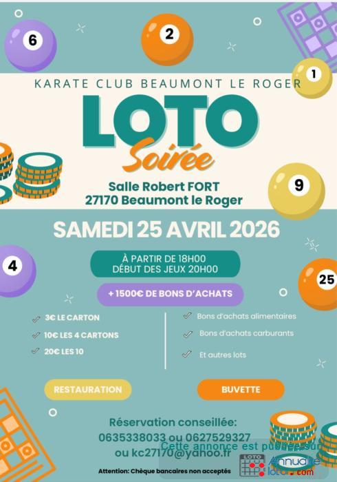 Ne manquez pas notre loto du samedi 25 avril à la salle des fêtes de Beaumont le Roger!