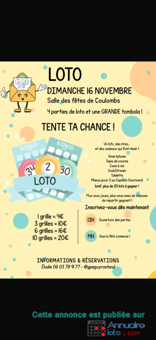 Venez nombreux à notre super loto annuel ! De beaux lots sont à gagner !!