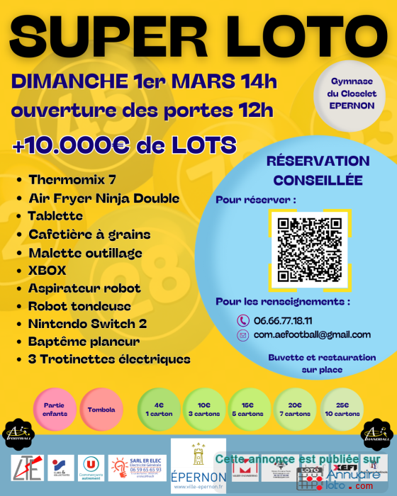 SUPER LOTO organisé par l'amicale football et handball d'EPERNON