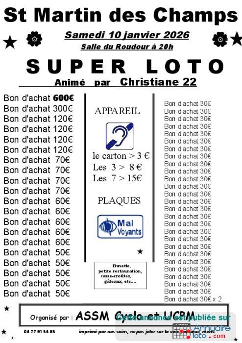 Super Loto animé par Christiane (22). Organisation ASSM Cyclo en partenariat avec l'UCPM.