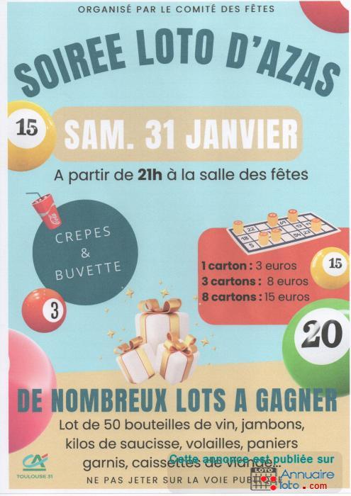 Localisation du loto : Salle des fêtes Mairie 31380 Azas
