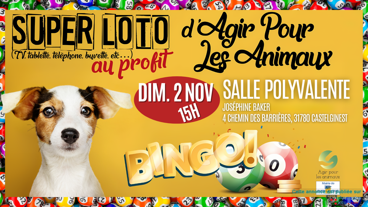 Notre SUPER LOTO est de retour cette année encore!! Save the date!! Rendez-vous dimanche 2 novembre, Salle Polyvalente Joséphine Baker au 4 chemin des Barrières, 31780 Castelginest à 15h (ouverture des portes à 13h30)