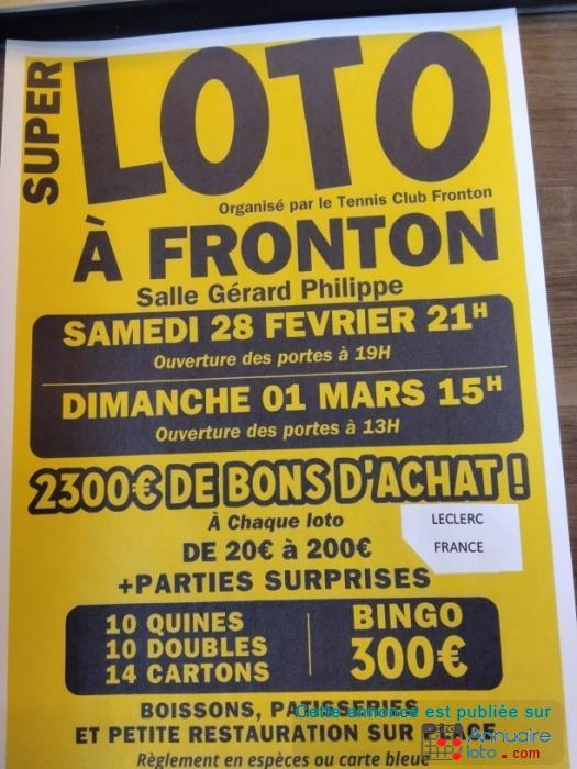 SUPER LOTO DU TENNIS CLUB A FRONTON.