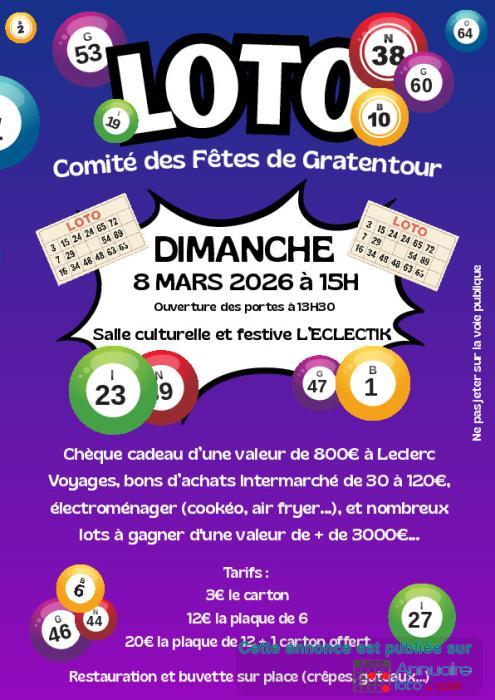 Le comité des fêtes de Gratentour organise son 1er Loto à 15H
