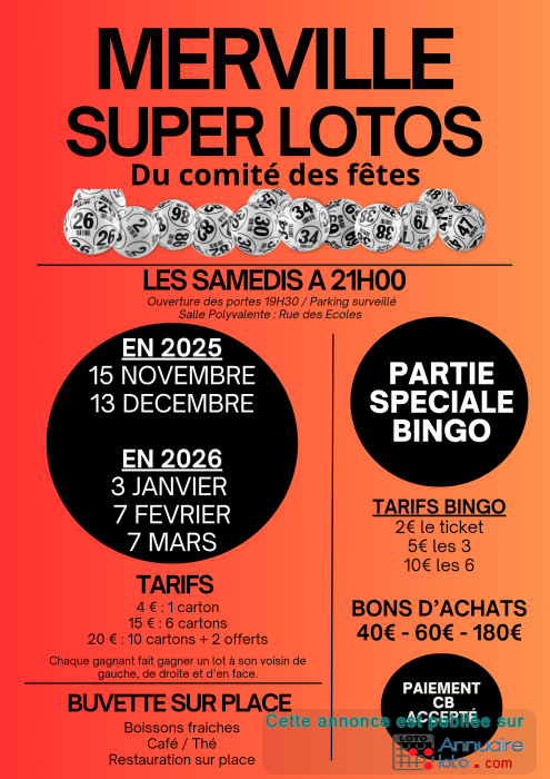 " MÉGA LOTO " .. Des DEUX ASSOCIATIONS FOOTBALL et PÉTANQUE MERVILLOISE