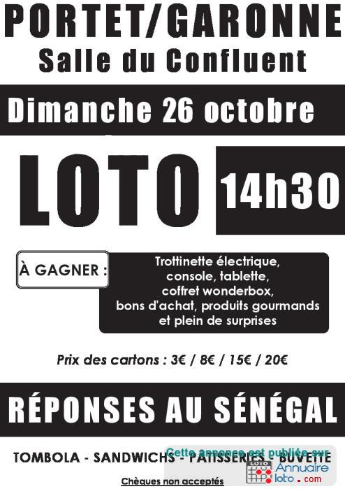L'association humanitaire « Réponses au Sénégal » organise un grand loto à la salle du Confluent de Portet sur Garonne, le dimanche 26 octobre à 14h30, au profit des enfants de l’école de Louly N’Gogom au Sénégal.