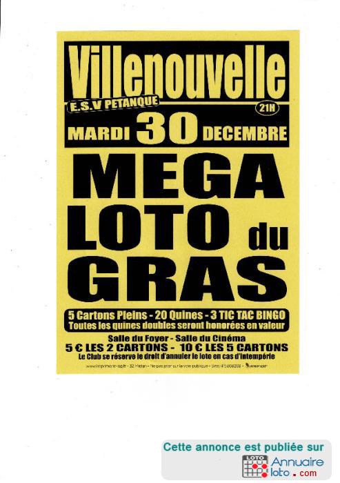 MEGA LOTO du GRAS mardi 30 décembre 21h
