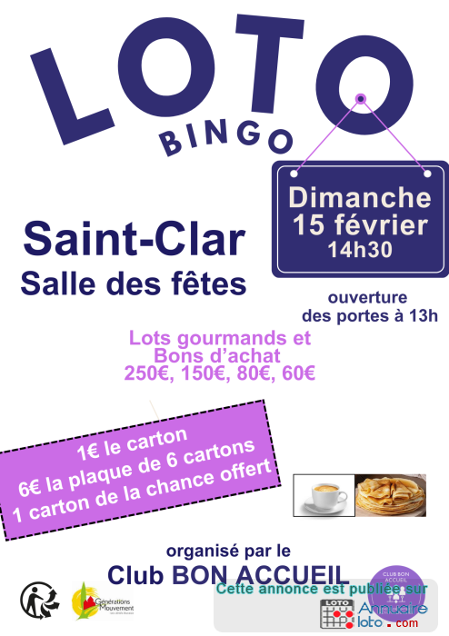 Loto annuel de notre association, de très beaux lots et des bons d'achat.