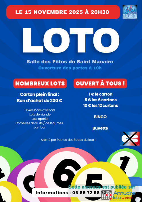 Loto du Guidon Macarien à 20h30 à Saint-Macaire