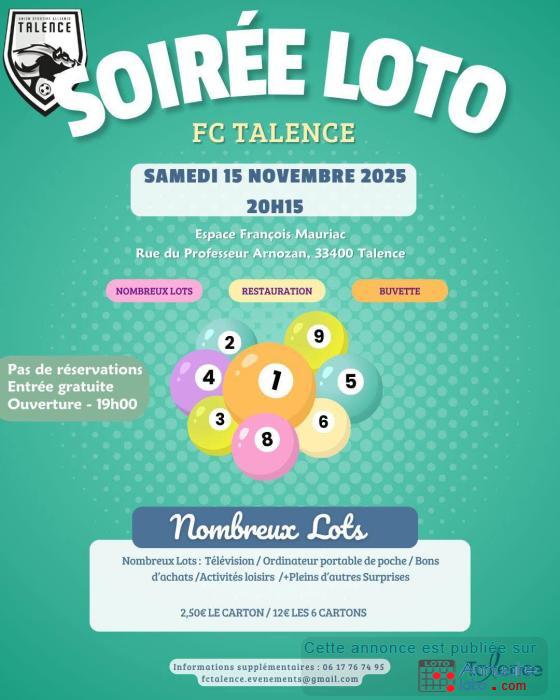 Le FC Talence organise son second loto de la saison 2024-2025 au Dôme de Talence le 3 mai 2025 à partir de 18h30.