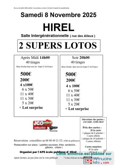 Organisés par l'A3LS, en partenariat JCO Animation, afin de récolter des fonds servant à financer les projets scolaires de l'école d'Hirel.