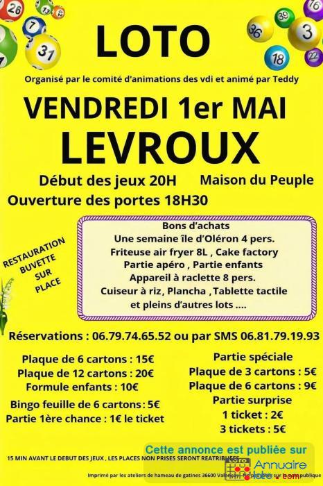 Localisation du loto : Maison du peuple 36110 Levroux