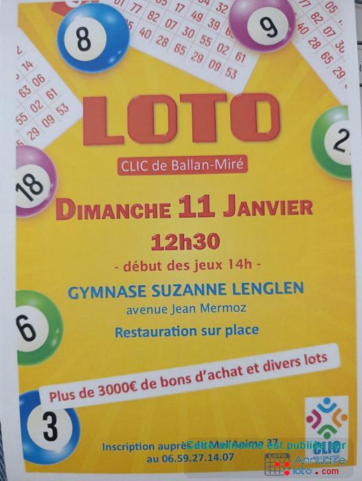 SUPER LOTO DE L'ASSOCIATION CLIC DE BALLAN MIRE VOUS PRESENTE SON LOTO ANIME PAR MELANIE RESERVATION AU 06.59.27.14.07