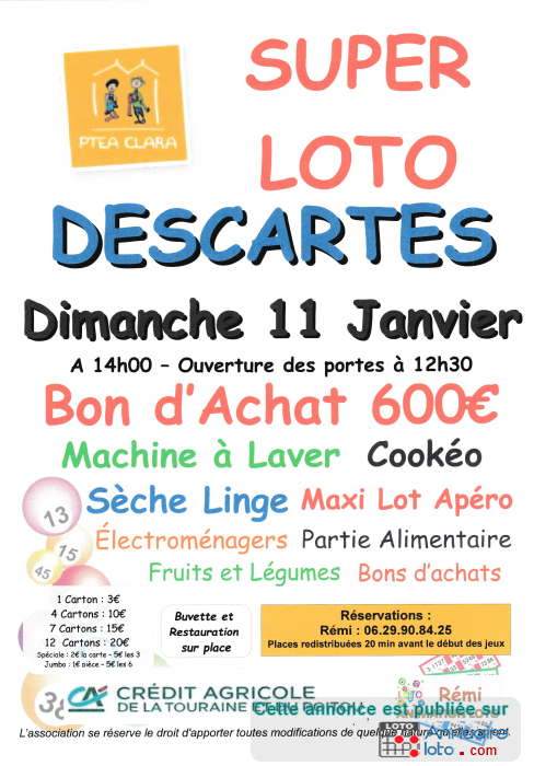 SUPER LOTO au profit du foyer d'accueil pour enfants "PTEA CLARA" au Cambodge.