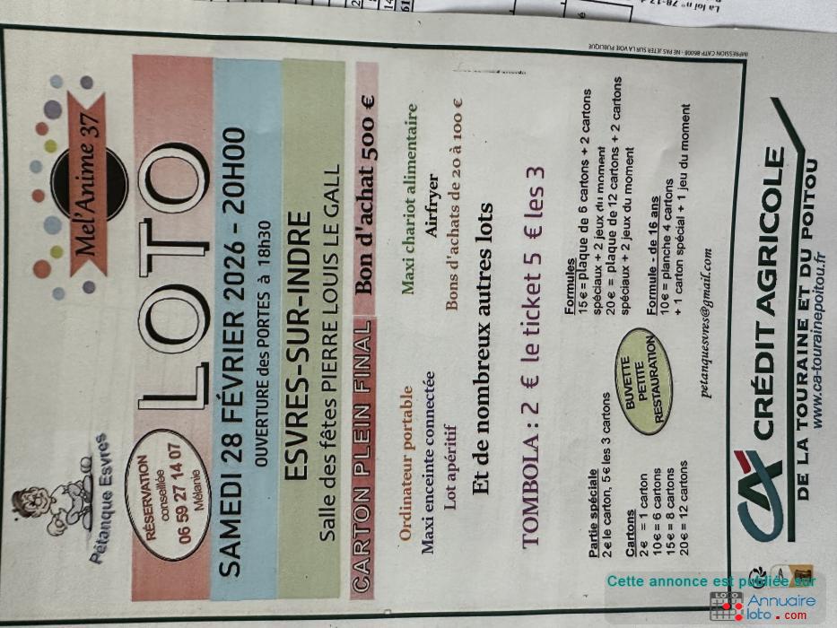 SUPER LOTO DE L'ASSOCIATION DE LA PETANQUE D'ESVRES