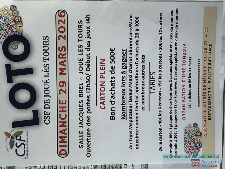 SUPER LOTO DE L'ASSOCIATION CSF DE JOUE LES TOURS