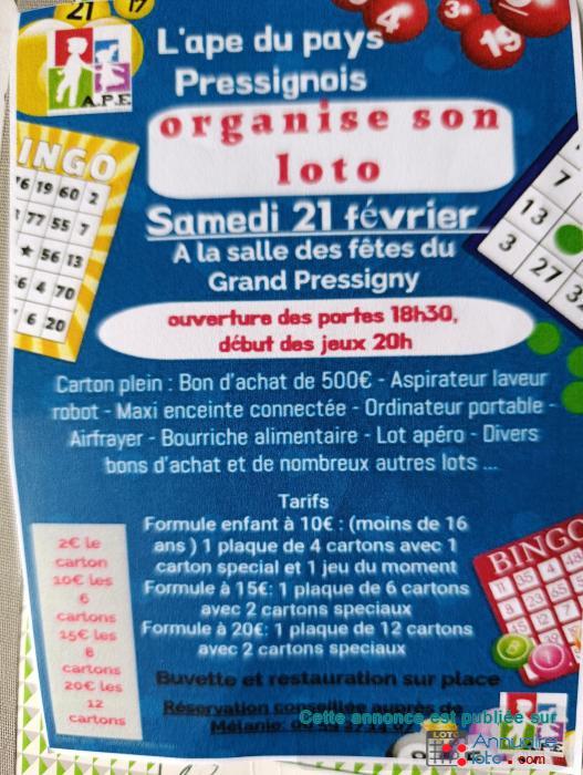 SUPER LOTO DE L'ASSOCIATION DE L'APE DU PAYS PRESSIGNOIS