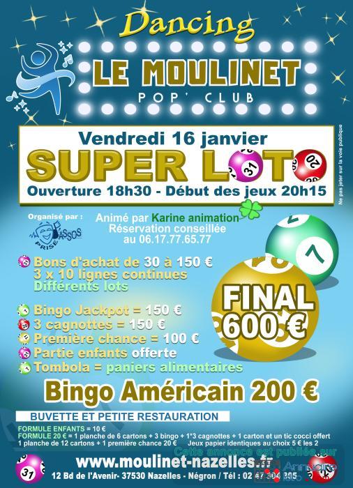 SUPER LOTO animé par KARINE ANIMATION avec bons d'achats, tombola.