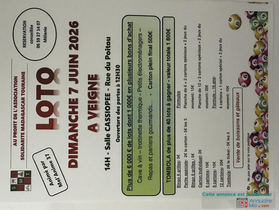 SUPER LOTO ANIME PAR MELANIE DE L'ASSOCIATION SOLIDARITE MADAGASCAR TOURAINE