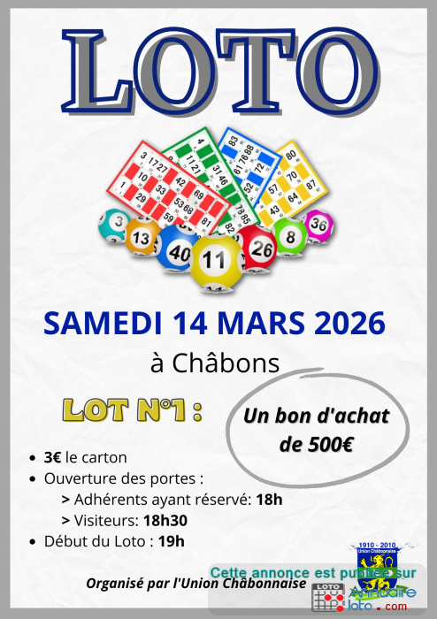 Loto composée de 8 partis dont 1 enfant (jusqu'à 12 ans) et une partie au bénéfice du joueur de la carte et non de l'acheteur.