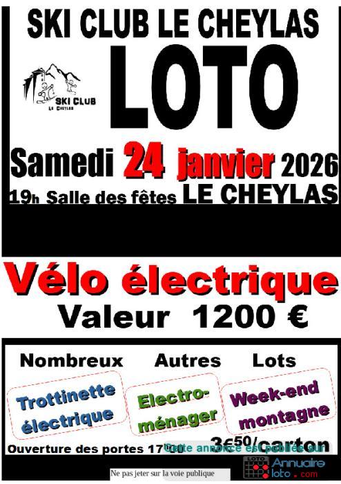 Cette année le LOTO du Ski Club-Le Cheylas se déroulera le samedi 24 janvier 2026 à partir de 19h00. (ouverture des portes à 17h00) à la salle des fêtes du Cheylas , à côté du gymnase.