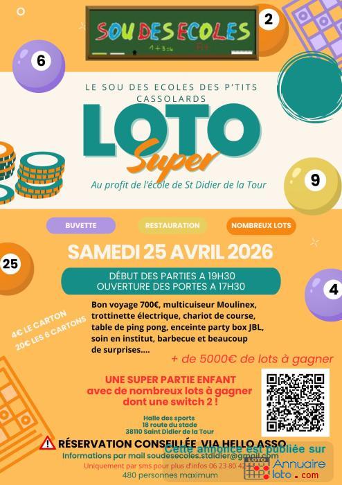 Après le succès de notre premier loto, le Sou des Écoles revient encore plus motivé et festif pour une 2ème édition pleine de surprises ! 🥳