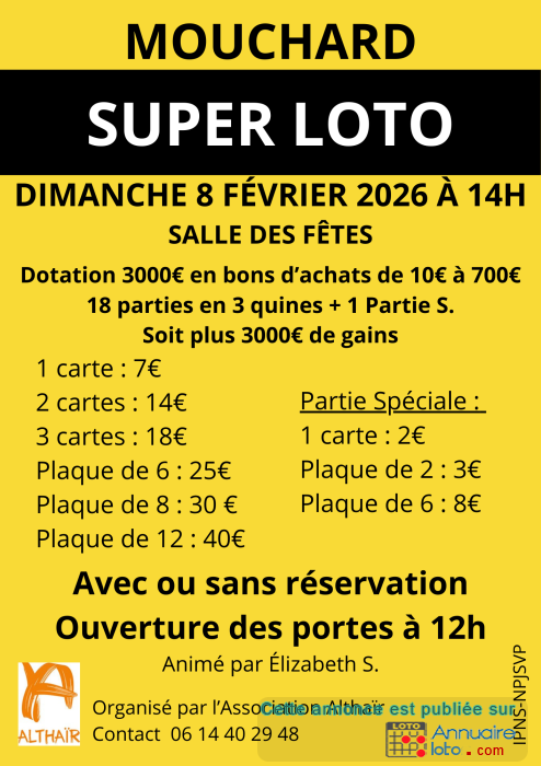 3è édition du super loto de l'association Althaïr de Salins-les-Bains