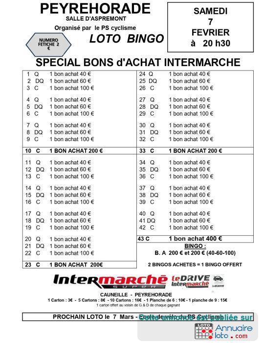 Loto-Bingo du PS Cyclisme