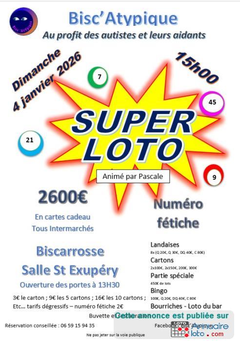 Super loto avec 2600 de lots en cartes cadeau Intermarché avec poches "surprise" tirées au sort à chaque carton gagnants.