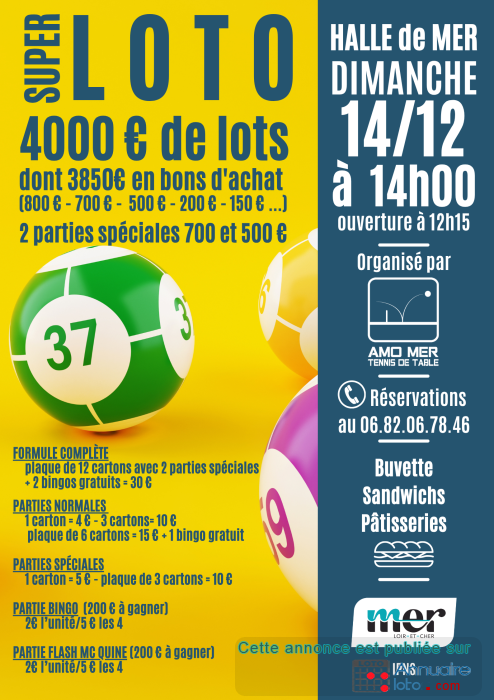 SUPER LOTO DU COMITE DE JUMELAGE HALLE DE MER