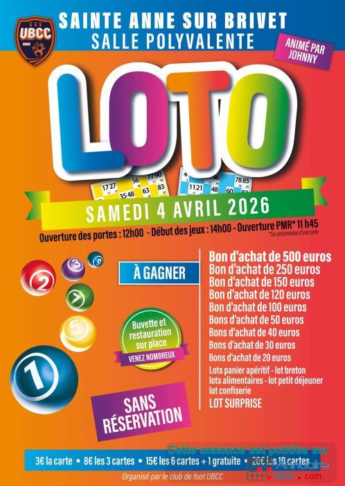 Loto organisé par l'UBCC Foot, club de foot de Campbon, La Chapelle-Launay, Quilly et Sainte-Anne-sur-Brivet