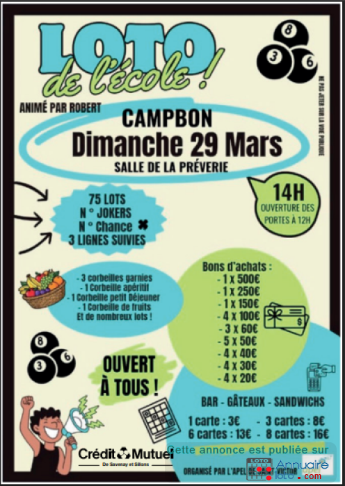 Loto de l'école Saint Victor organisé par l'APEL et animé par Robert
