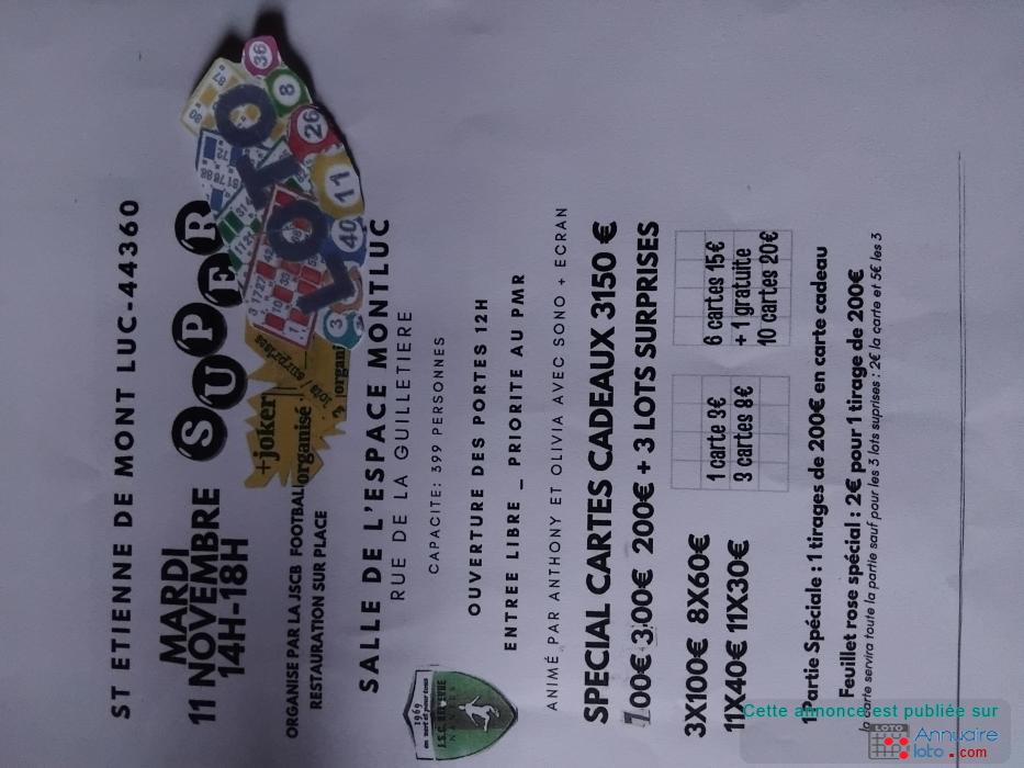 700€ / 300€ / 200€ / 3X100€ / 8x60€ / 11x40€ /11x30€ . + 3 lots surprises / 2€ / la carte / 5€ les 3 cartes / + 1 tirage. / Spéciale / de 200€ / cartes en papiers feuillets / rose 2€ l / a carte / cette carte servira pour toute la partie du loto / sauf / pour les 3 lots / surprises .